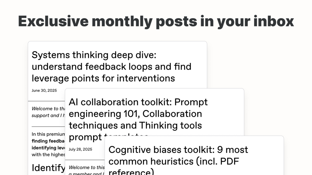 - Deep dives on thinking tools, mental models and frameworks