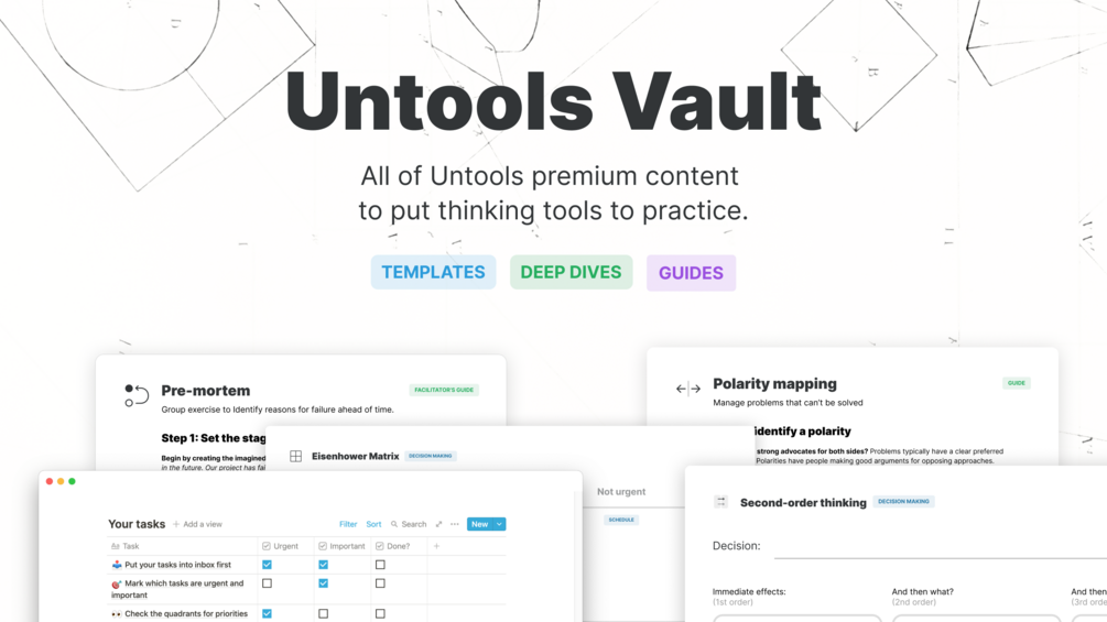 My premium templates have been sold over 1,000 times. I created Untools Vault as a single place to access all templates and exclusive deep dives and guides I write monthly.